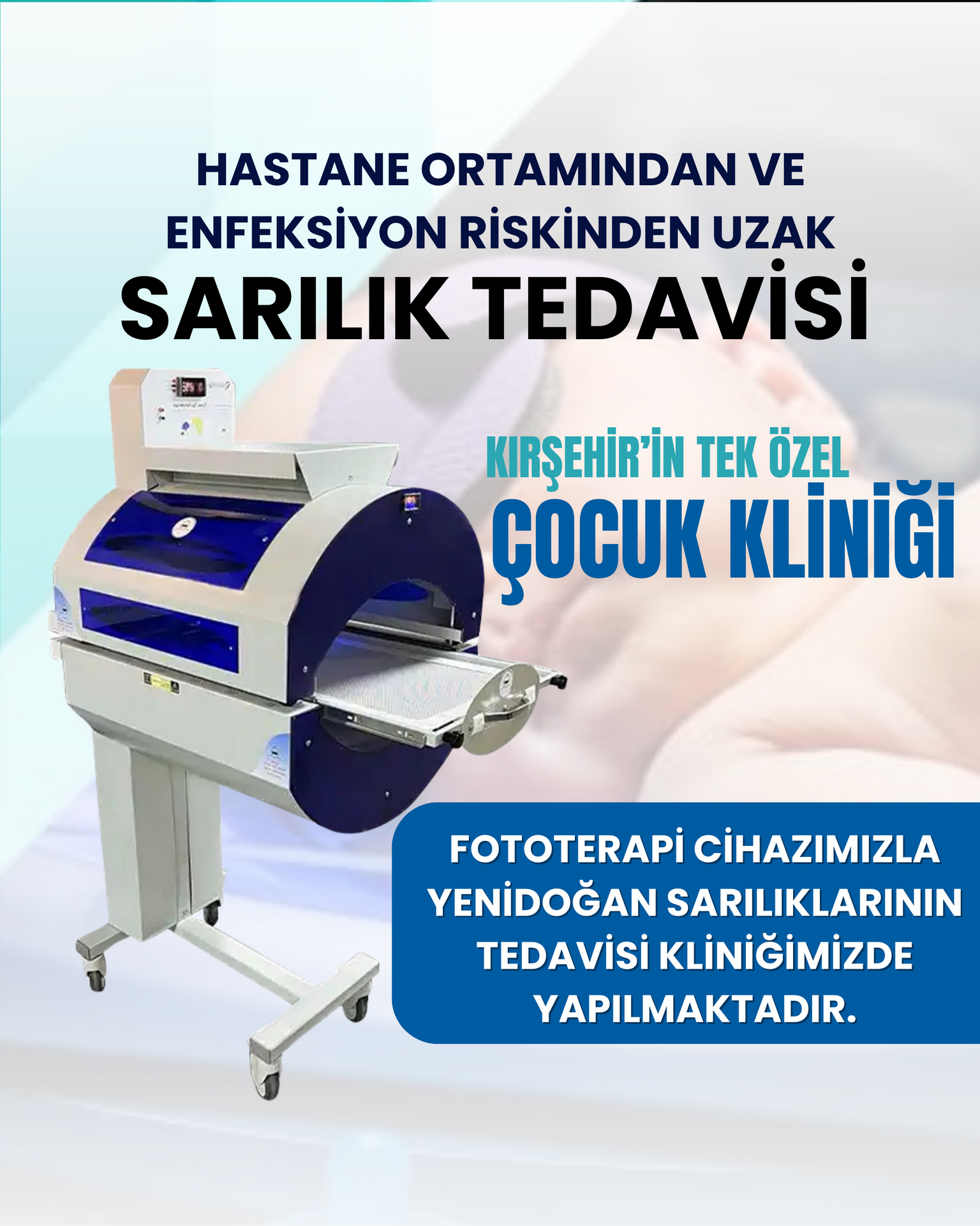 Kliniğimizde çocuk hastalıklarının tanı ve tedavisinin yanısıra Fototerapi cihazımızla yenidoğan sarılıklarının tedavisi de yapılmaktadır.